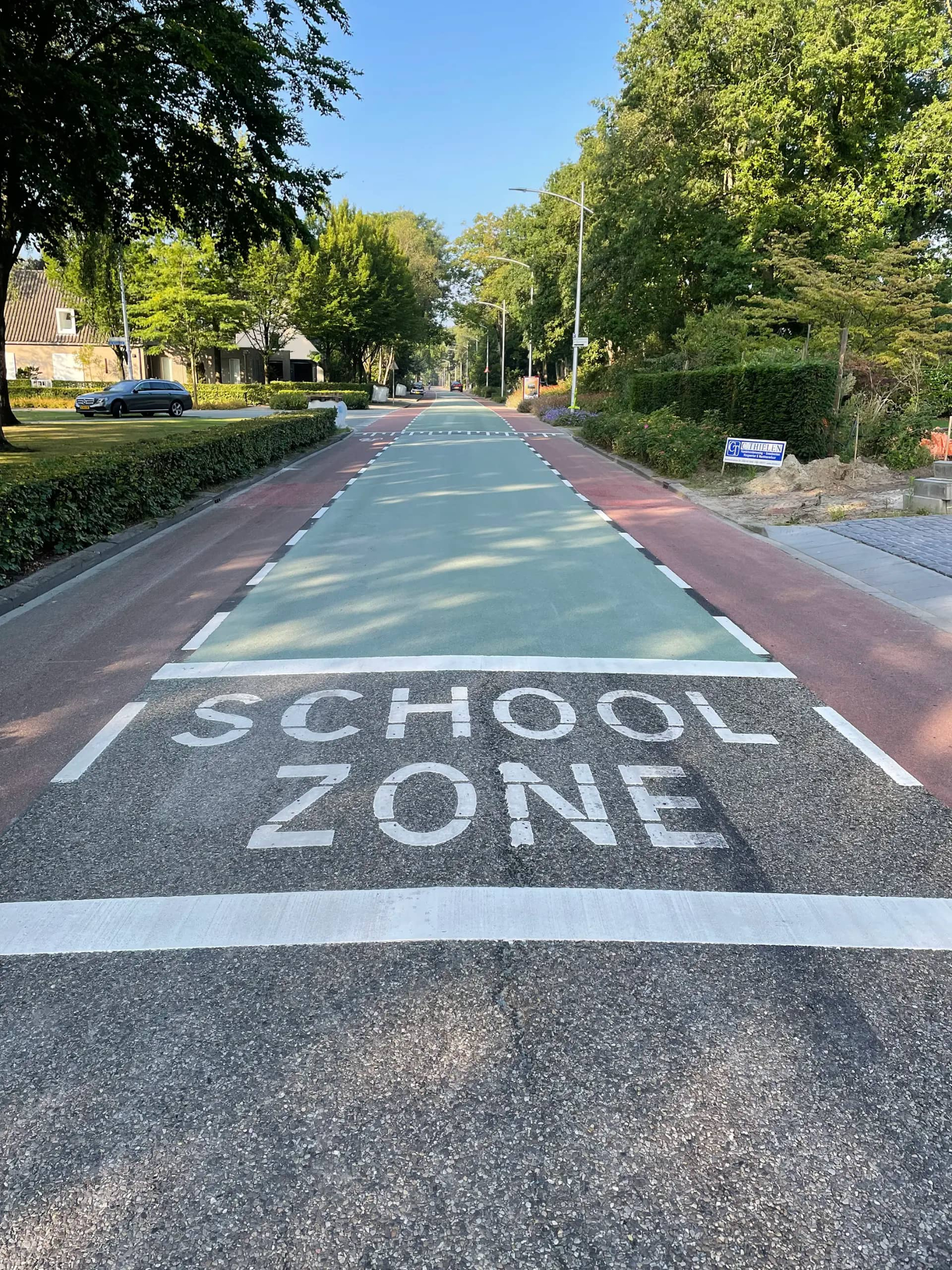 Een slijtlaag op asfalt kan in alle kleuren worden aangebracht. Dit verhoogt niet alleen de esthetische waarde, maar vooral de veiligheid. Gekleurde kruisingsvlakken, fiets- en busstroken vallen beter op bij slecht weer of in het donker. De structuur van onze toplaag zorgt voor extra grip, wat de verkeersveiligheid ten goede komt.